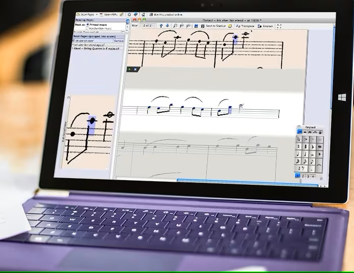 Bundle software specializat pentru editare de partituri digitale, scanare și transcriere de partituri în și din format PDF în format editabil, transcriere de fișiere audio în format de partitură digitală, transcriere de fișiere digitale format MIDI în notație muzicală standard, compoziție muzicală solo și ansamblu pentru proiecte audio, audio-video, multimedia, teatru, film, operă, musical.